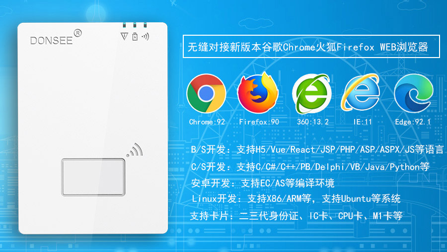 明創(chuàng)智慧是專為智能身份證識別系統(tǒng)開發(fā)定制的一款免驅(qū)多功能智能卡讀寫器,具備身份證信息脫機(jī)讀取、身份證物理ID讀取、IC卡信息讀取、電子標(biāo)簽讀取等功能,廣泛應(yīng)用于公安、醫(yī)療、人社、銀行、建筑行業(yè)、房地產(chǎn)、公寓、酒店、物流、教育、考試報名等行業(yè)實(shí)名制系統(tǒng)。